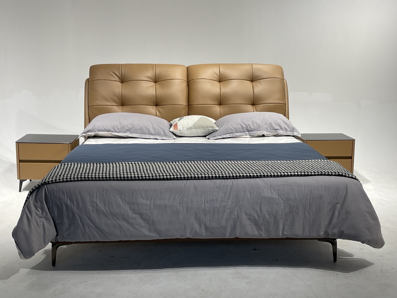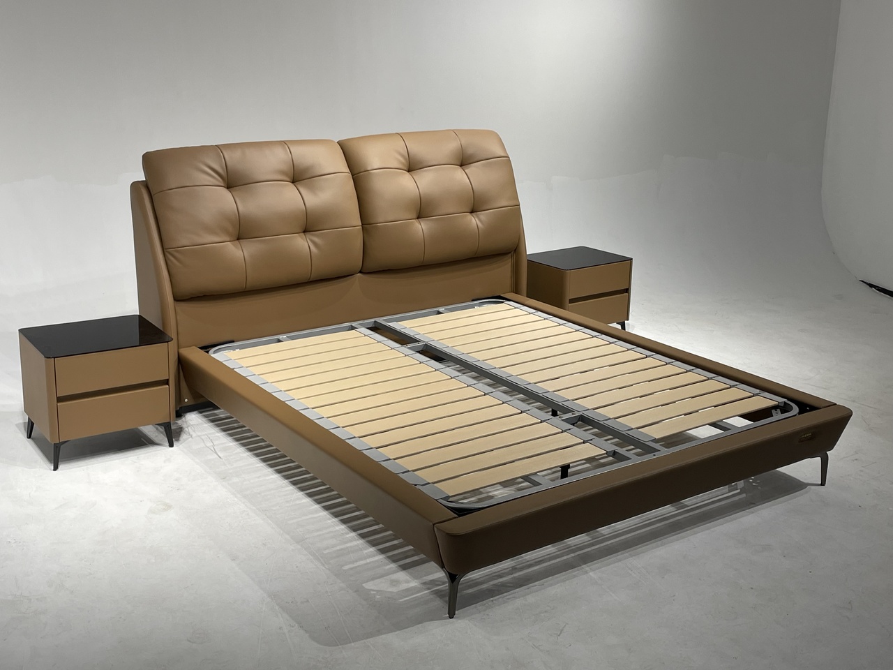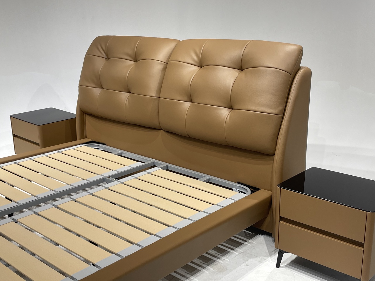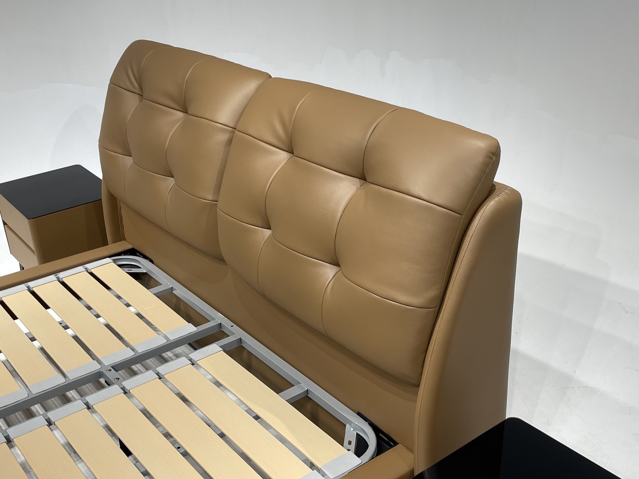 备注:床板科技板,它不变形、不开裂、不漏油、不变色,15排,异形床边,高回弹海绵填充