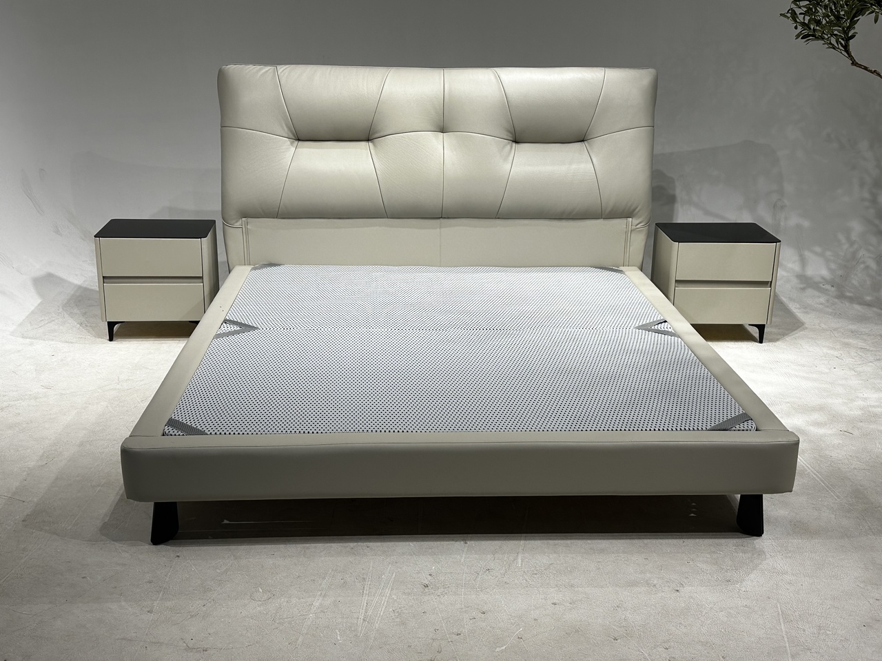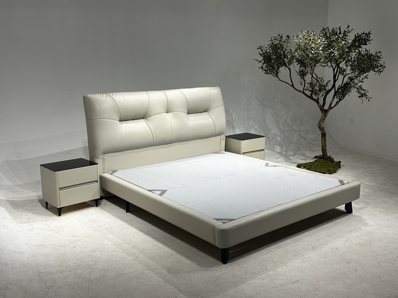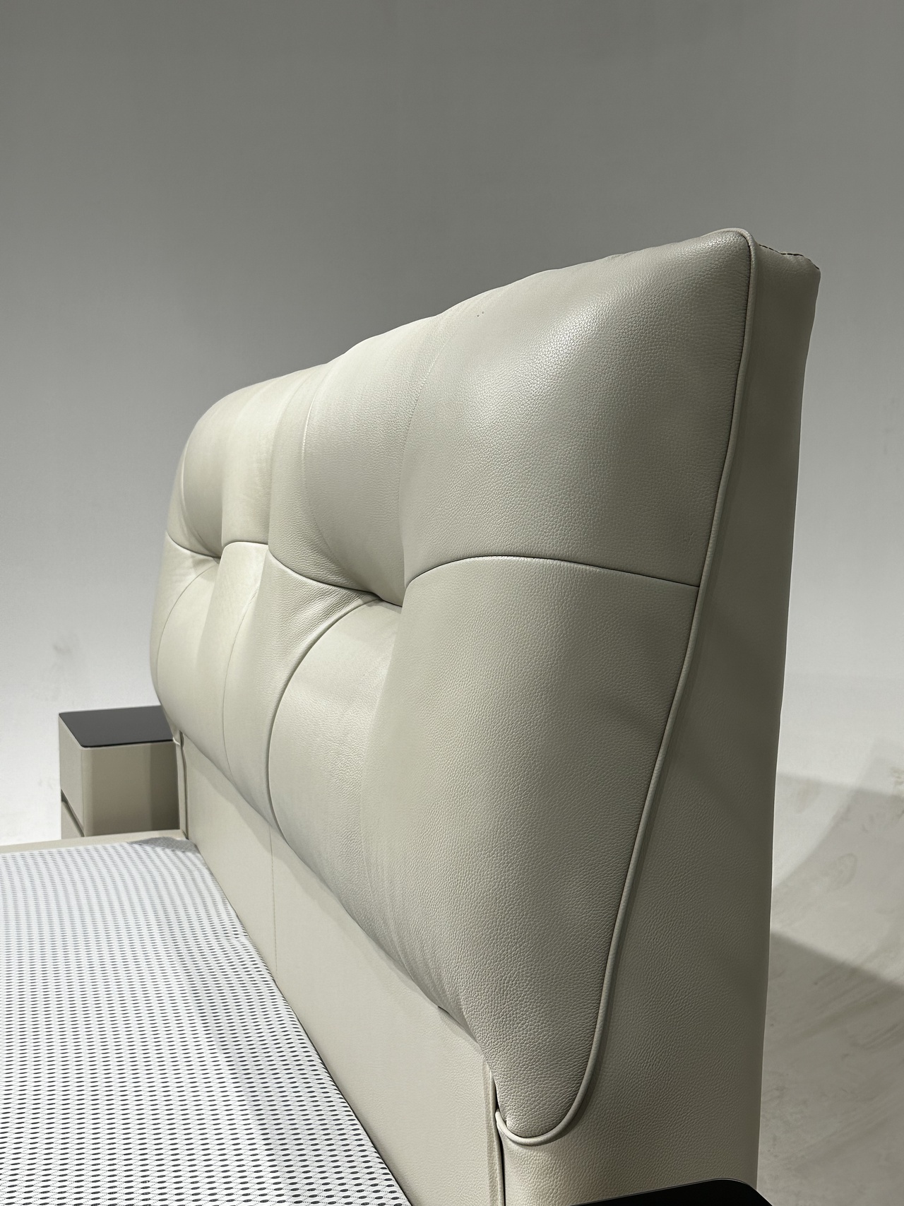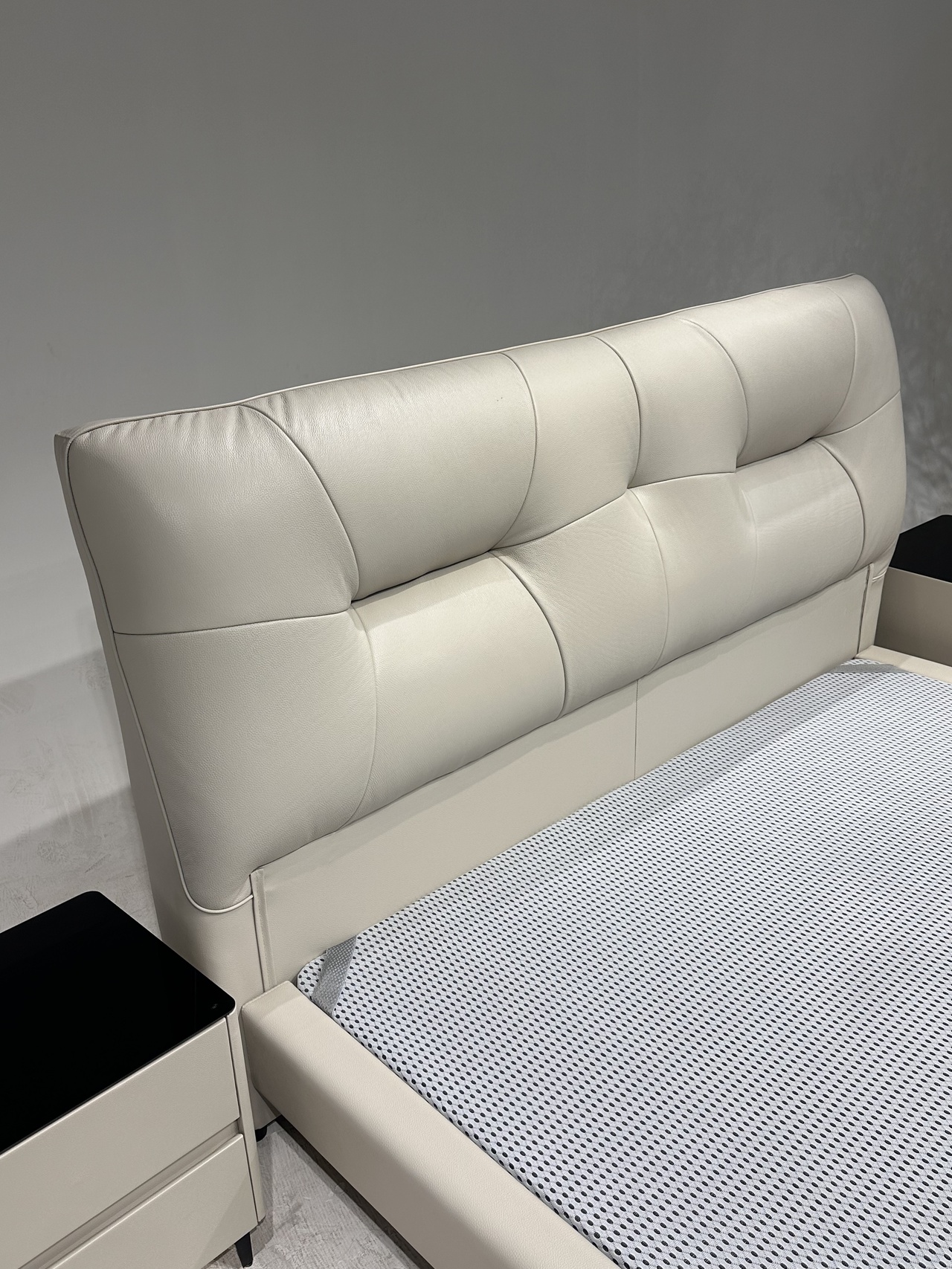 2:靠包高回弹密度海绵填充,床头做的拉点设计,肌肉感满满
